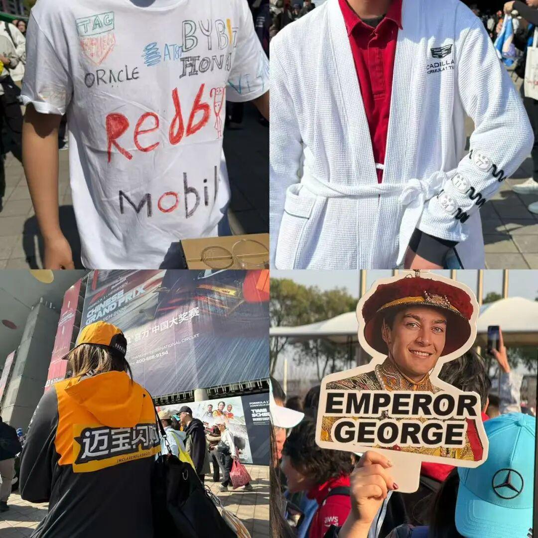 这种「手搓物料」原本更常见于演唱会和漫展现场,如今也逐渐出现在F1赛场。车迷通过这些物料,把赛车梗文化、网络流行语以及车手个人符号结合在一起,使观赛氛围更接近一场大型线下嘉年华。