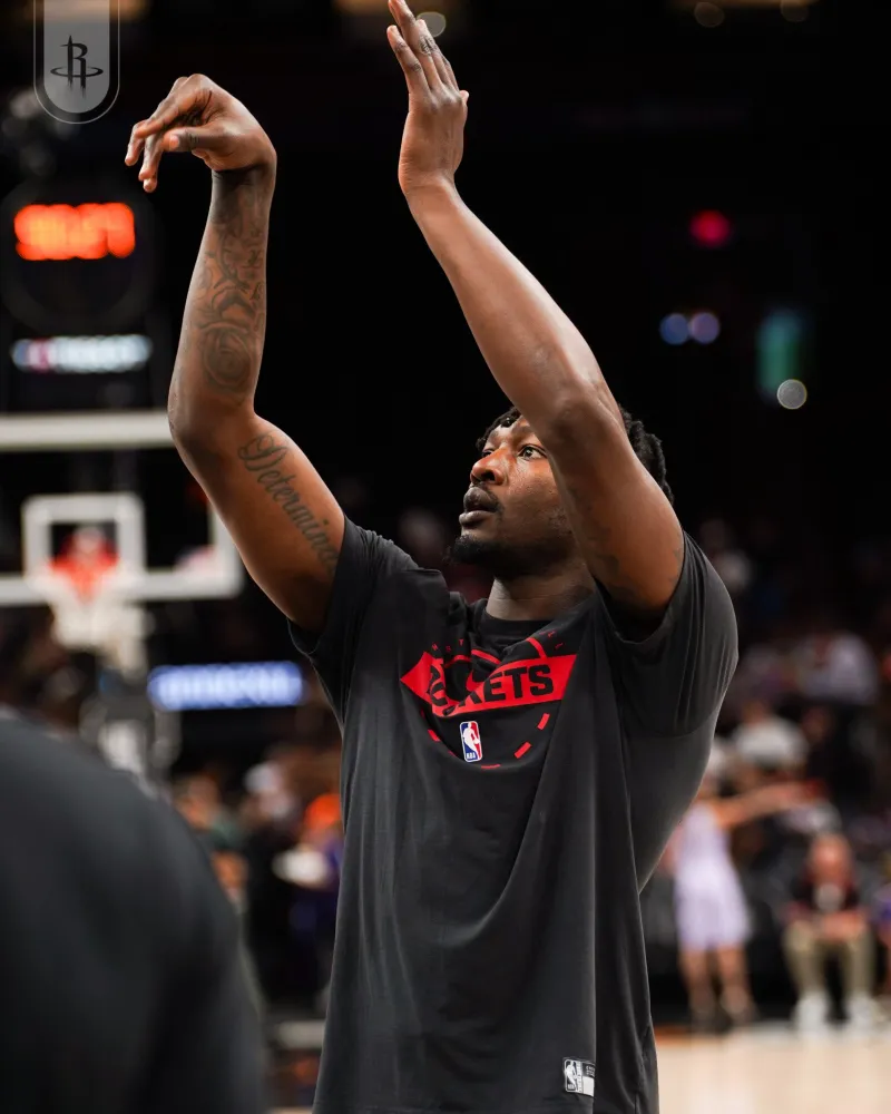 赛前,火箭官方社媒分享球员赛前训练的组图,凯文-杜兰特等球员出镜。